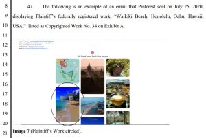[Note: As a default setting, Gmail does not display in-line images in email. So if I received Pinterest’s notification emails, I would likely not have seen the image unless I took the extra step to show them. The court opinion doesn’t address this scenario.]